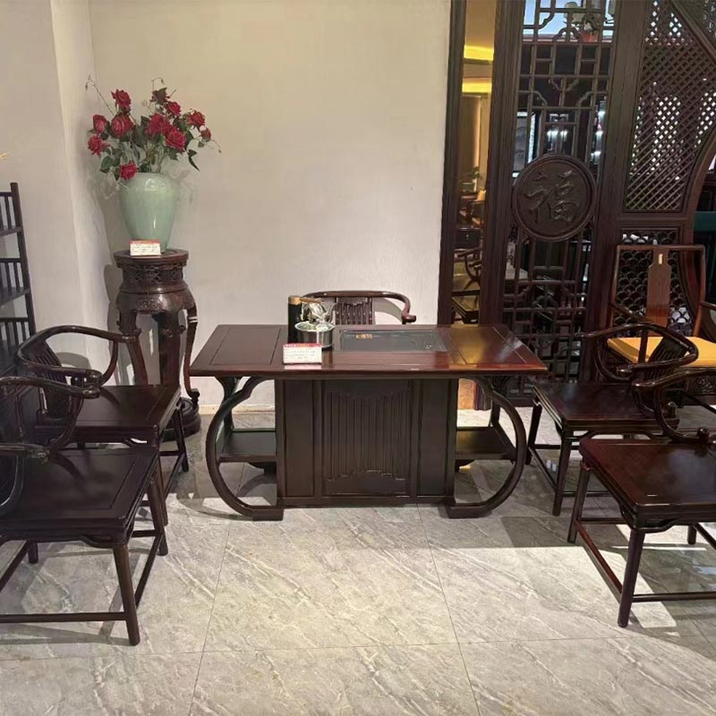 တရုတ်စတိုင် Rosewood Classical Tea Table သည် အရည်အသွေးမြင့်သော ဖြူဖြူစန္ဒကူးသစ်သားဖြင့် ပြုလုပ်ထားသည်။ ယုံကြည်စိတ်ချရသောလက်ရာဖြင့် Tianjiang Redwood Factory မှဂရုတစိုက်ထုတ်လုပ်ထားသည်။ သက်တောင့်သက်သာရှိပြီး ရင်းနှီးသော ပွေ့ပိုက်ထားသော ကုလားထိုင်တစ်ခု တပ်ဆင်ထားသည်။ ကောင်းမြတ်သောတိမ်ပုံစံကို ထွင်းထုထားသည်၊ ဆိုလိုသည်မှာ ကုသိုလ်တရားဖြစ်သည်။ mortise နှင့် tenon တည်ဆောက်ပုံသည် တည်ငြိမ်ပြီး တာရှည်ခံပါသည်။ တရုတ်စတိုင် Rosewood Classical Tea Table သည် လက်ဖက်ရည်အရသာနှင့် အပန်းဖြေရန်အတွက် အကောင်းဆုံးရွေးချယ်မှုတစ်ခုဖြစ်သည်။ လက်ဖက်ရည် စားပွဲ၏ သက်တောင့်သက်သာ ထိုင်ရသည့် ခံစားချက်က သင့်အလုပ်များသော ဘဝတွင် အေးချမ်းသော အခိုက်အတန့်ကို ရှာဖွေနိုင်စေပါသည်။ မိသားစုနဲ့ နွေးနွေးထွေးထွေး အချိန်ဖြုန်းတာပဲဖြစ်ဖြစ် သူငယ်ချင်းတွေနဲ့ ဘဝအကြောင်း စကားပြောတာပဲဖြစ်ဖြစ်၊ ကျွန်တော်တို့ရဲ့ လက်ဖက်ရည်ဆိုင်က သင့်အတွက် အကောင်းဆုံးရွေးချယ်မှုပါပဲ။