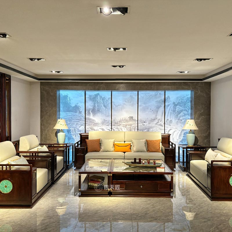 ဤတင့်တယ်သော တရုတ်ပုံစံသစ်သားဆိုဖာသည် ကြီးမားသောဧည့်ခန်းများအတွက် အကောင်းဆုံးဖြစ်သည်။ Chuantianjiang Redwood Factory မှ ဂရုတစိုက်ပြုလုပ်ထားပြီး အရည်အသွေးကောင်းမွန်သော အဖိုးတန် ebon ဖြင့်ပြုလုပ်ထားသည်။ ၎င်းသည် ကြမ်းပြင်ပေါ်တွင် မတ်တပ်ရပ်နေသော မော်ဒယ်ဖြစ်ပြီး အလုံးစုံသောပုံစံသည် လူတို့အား ခမ်းနားမှုနှင့် ဇိမ်ခံမှုတို့ကို ခံစားစေသည်။ ကျယ်ဝန်းသော လက်ပတ်ဒီဇိုင်းသည် လှပရုံသာမက လက်တွေ့လည်းကျသည်။ ထူထဲသော ပျော့ပျောင်းသော အကွက်သည် ထိုင်ခြင်းကို ပျော့ပျောင်းစေပြီး သက်တောင့်သက်သာဖြစ်စေပြီး ၎င်းကို ထိုင်သည့်အခါ ညင်သာစွာ ပတ်ထားသကဲ့သို့ ခံစားရစေသည်။ ဇိမ်ခံကျောက်တုံးများကို အသုံးပြုခြင်းသည် ဆိုဖာ၏ဇိမ်ခံမှုကို ချက်ခြင်းမြှင့်တင်ပေးပြီး ဧည့်ခန်းကို ရွှန်းလဲ့ဇိမ်ခံသောလေထုကို ဖြည့်တင်းပေးပါသည်။