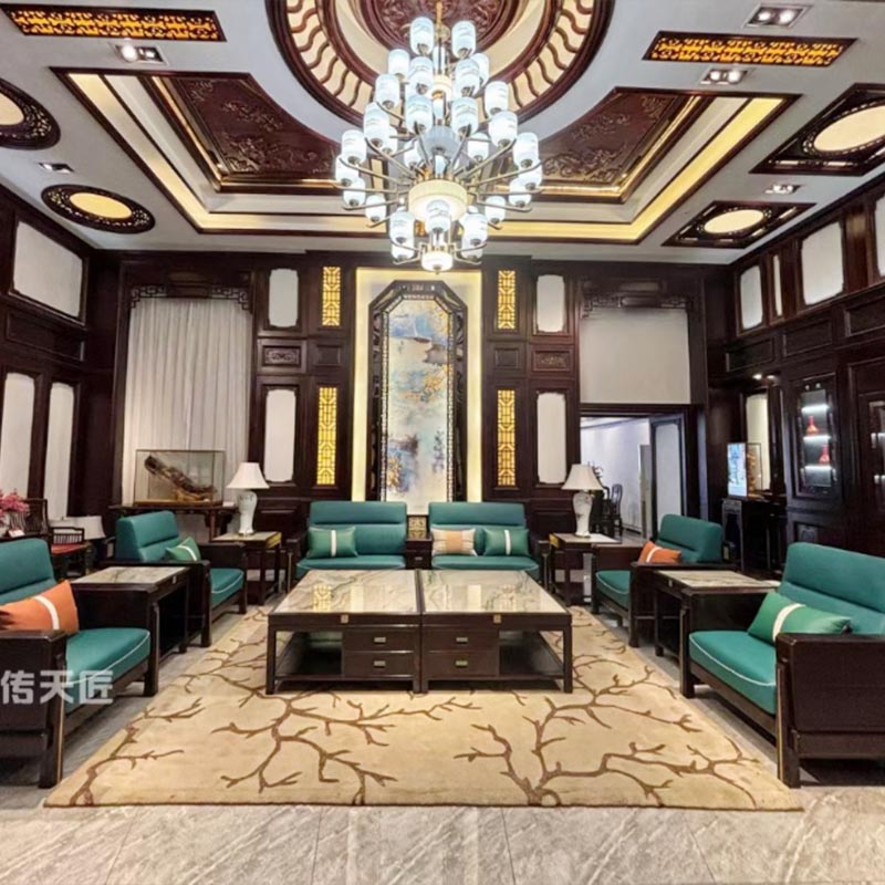 ဤဧည့်ခန်းအစိုင်အခဲသစ်သားဆိုဖာသည် တရုတ်ပုံစံသစ်အစုံကို နှစ်တစ်ထောင်သက်တမ်းရှိသော သစ်သားဖြင့်ပြုလုပ်ထားသည်။ အရောင်က နက်နဲပြီး ကျက်သရေအပြည့်နဲ့ နှစ်တွေကို ပုံပြင်ပြောသလိုပါပဲ။