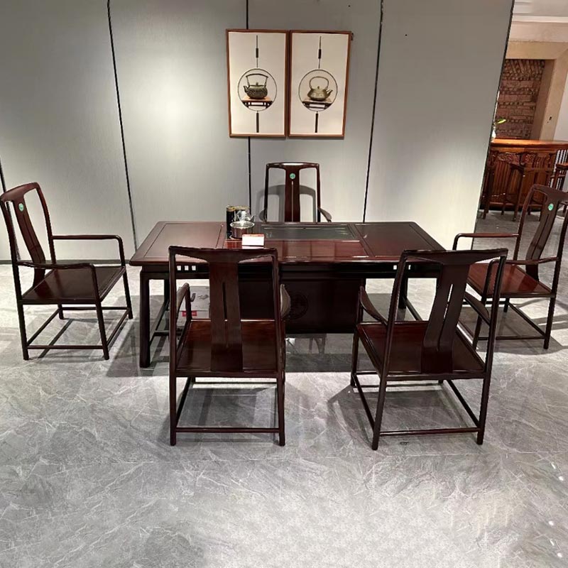တရုတ်ရိုးရာ ဟန်းဖော်ခြင်း လုပ်ငန်းစဉ်ကို လက်ဖက်ရည် စားပွဲ၏ အစွန်းတွင် အသုံးပြုကြပြီး လက်တင်ကုလားထိုင်၏ ခြေထောက်များသည် တရုတ်ရိုးရာ ပရိဘောဂများ၏ ပုံသဏ္ဍာန် လက္ခဏာများ ရှိသည်။ ဤတရုတ်စတိုင်အသစ်သည် တရုတ်ယဉ်ကျေးမှု၏ အဓိပ္ပါယ်ကို ထိန်းထားရုံသာမက ခေတ်မီဖက်ရှင်၏ အလှတရားများနှင့်လည်း လိုက်ဖက်ပါသည်။ ၎င်းကို တရုတ်ရိုးရာ လက်ဖက်ရည်သောက်ခန်း သို့မဟုတ် ခေတ်မီရိုးရှင်းသော ဧည့်ခန်းထောင့်တွင် ထားရှိသည်ဖြစ်စေ ဤတရုတ်ရိုးရိုးလက်ဖက်ရည်စားပွဲအသစ်သည် ထူးခြားပြီး အံဝင်ခွင်ကျ ရှုခင်းတစ်ခု ဖြစ်လာနိုင်သည်။